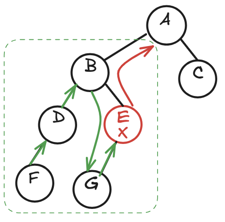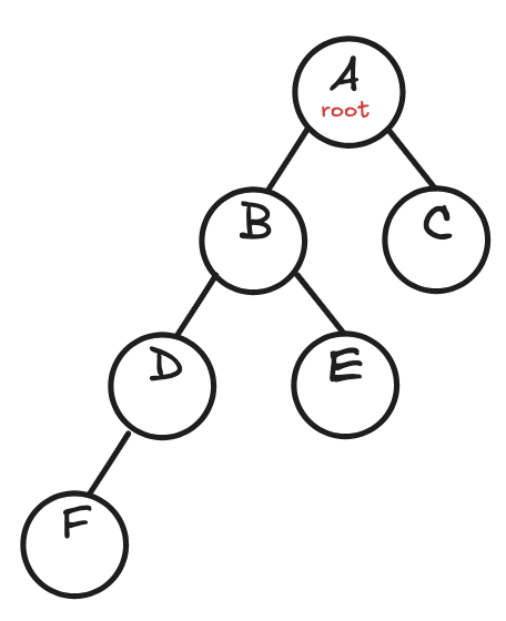 Example: Traversal order is (<F>, <D>, <B>, <E>, <A>, <C>)