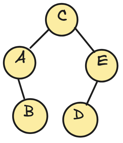 예를 들어, "B"를 루트로 만들고, "A"를 왼쪽, "C"를 오른쪽에 순서대로 삽입하면 다음과 같습니다: