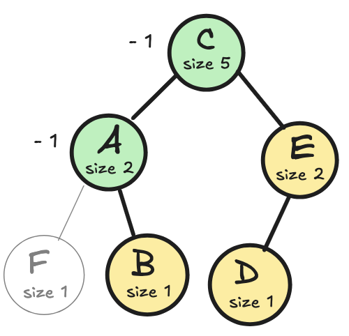 - A(2)는 자기 자신과 B를 포함한 서브트리 크기