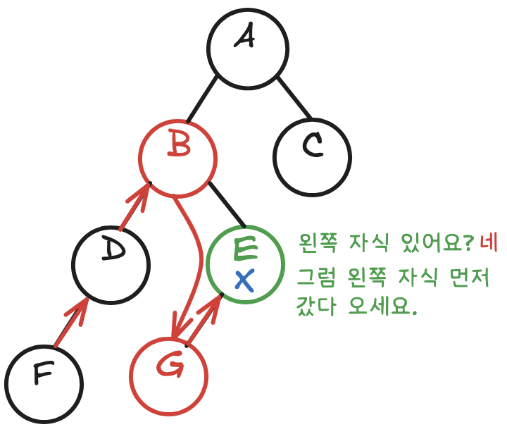 - 방문 순서: 왼쪽 → 자기 자신 → 오른쪽