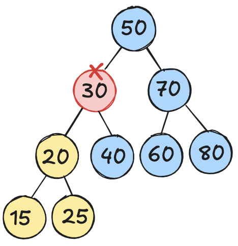 왼쪽으로는 30보다 작은 수, 오른 쪽으로 30보다 큰 수가 있다
