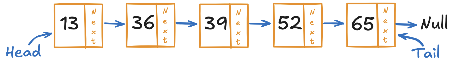 각 노드는 값(data) + 다음 노드(next) 에 대한 포인터로 구성되어 있는 자료 구조이다.