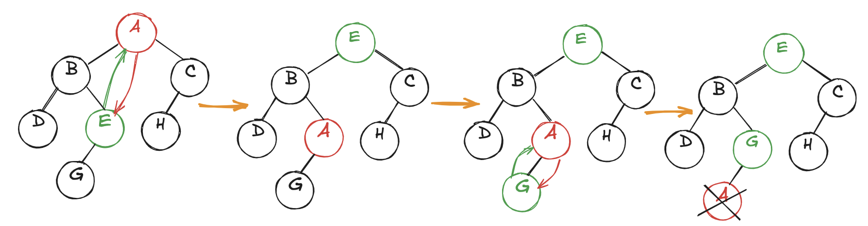 A → B → C → D → E