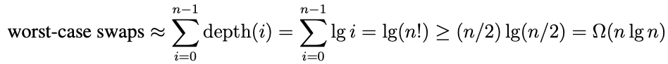 → build heap만 빨라졌을 뿐, 정렬은 log n씩 n번 = O(n log n)