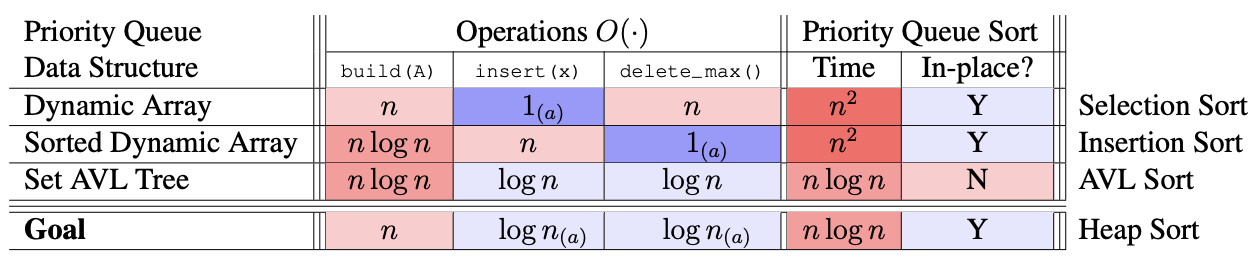 • Is there a simpler data structure for just priority queue, and in-place O(n lg n) sort?
