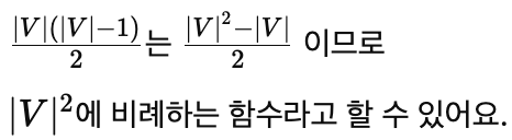 위 식에서 보듯이 분자나 곱셈 항이 |V|^2 (정점 개수의 제곱)에 비례합니다.