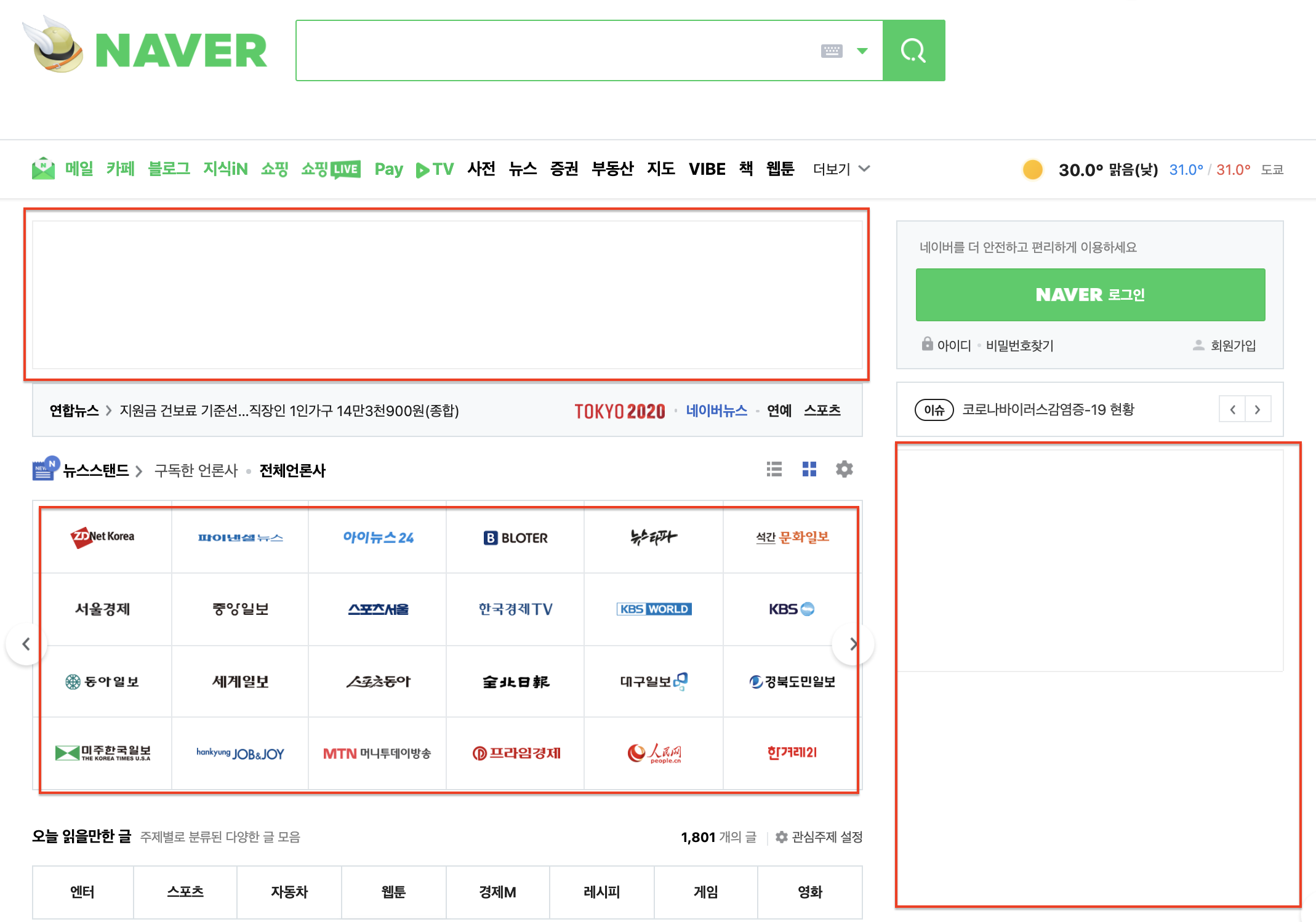 광고 없어지고 뉴스스탠드 클릭도 안됨.
